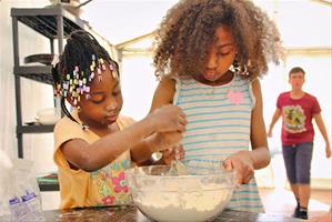 Les vacances des saveurs, de la découverte, du goût et de la nature.Je pétris mon pain avant de le regarder dorer dans le vieux four. Un soir, je peux faire mon repas comme les explorateurs et même manger des guimauves grillées ou des bananes au chocolat. Équipé des outils adéquats, je construis et je joue dans ma cabane.